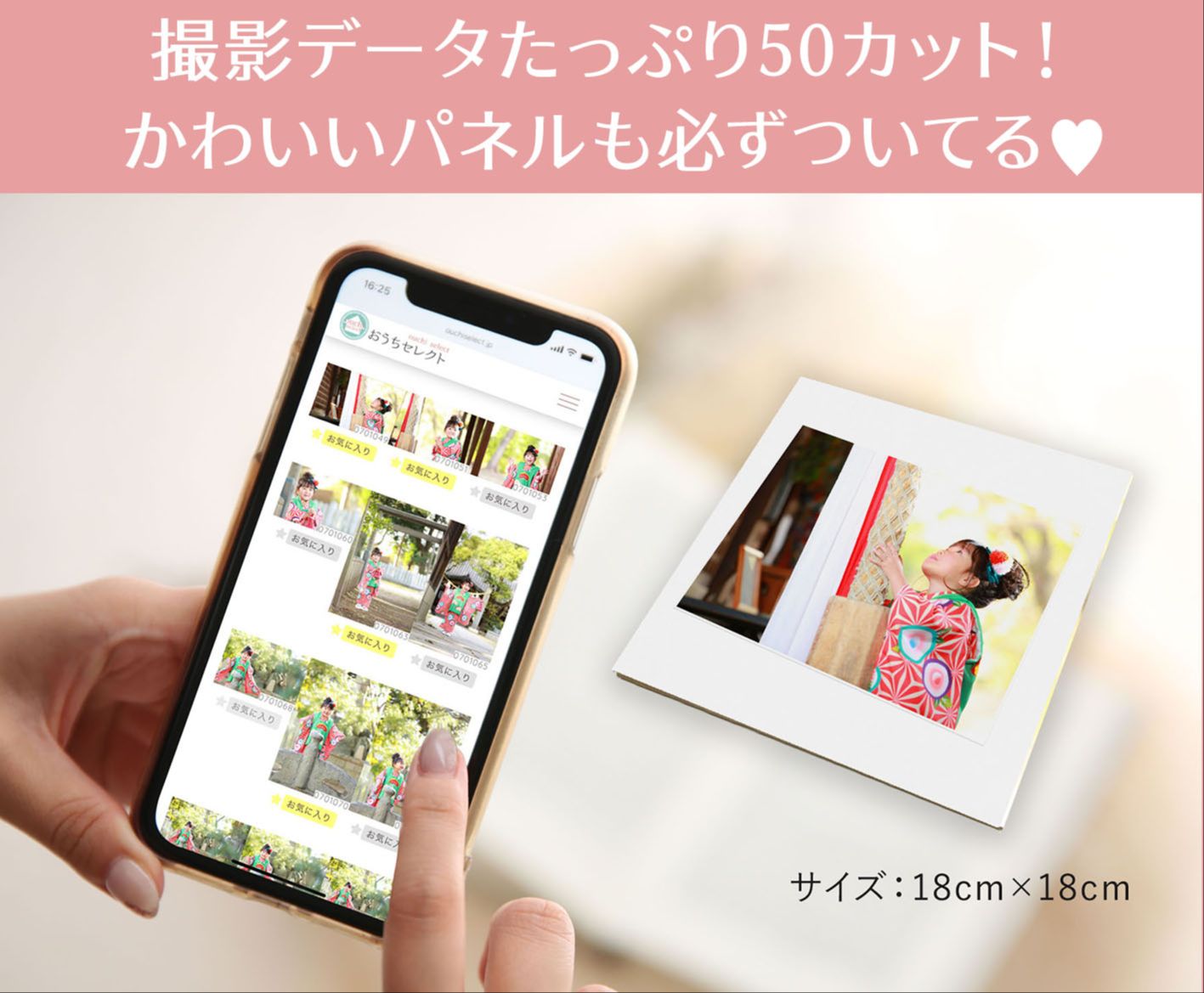 キレイに補正したデータがたっぷり50カット!スマホでいつでも見られます♪どんなお部屋にも馴染む可愛いスクエアパネルが全プラン必ず付いてる♥