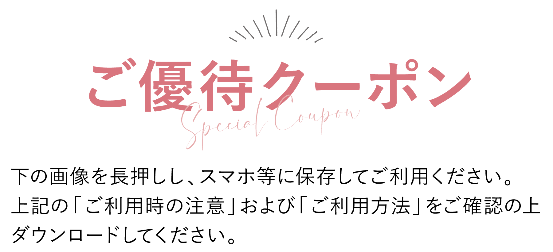 ※ご優待特典は本ページのクーポンご利用の方限定の特典となります。